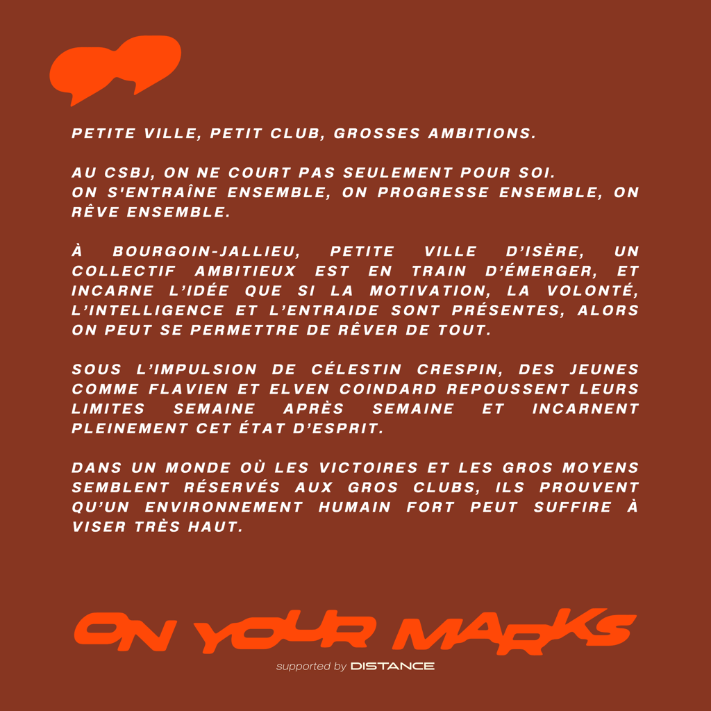 Flavien et Elven Coindard, jeunes espoirs du demi-fond français, sont accompagnés de leur entraîneur Célestin Crespin dans ce nouvel épisode d’On Your Marks. Ensemble, ils racontent la naissance d’un collectif ambitieux au CSBJ, leur progression vers le haut niveau, et leur vision du demi-fond moderne. Un échange inspirant sur l'entraînement, la force du groupe, et l’envie de faire bouger les lignes, même depuis un “petit” club.