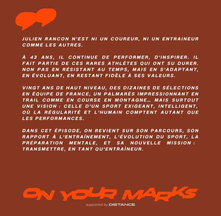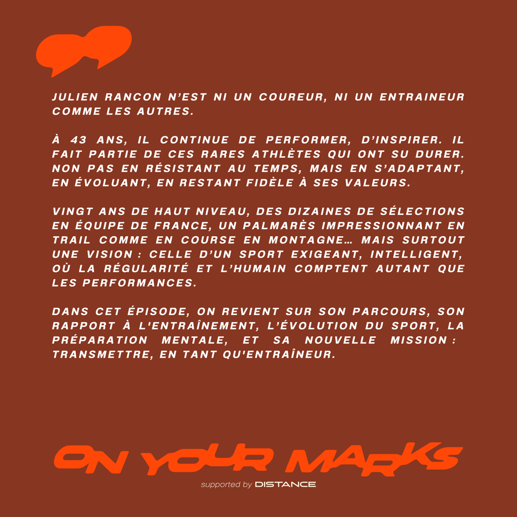 Julien Rancon, figure incontournable du trail et de la course en montagne, partage dans cet épisode d’On Your Marks son parcours exceptionnel, ses clés de longévité au haut niveau, et sa vision de l'entraînement. Un échange passionnant sur l’évolution du trail, la rigueur mentale, et le passage du rôle d’athlète à celui d’entraîneur.