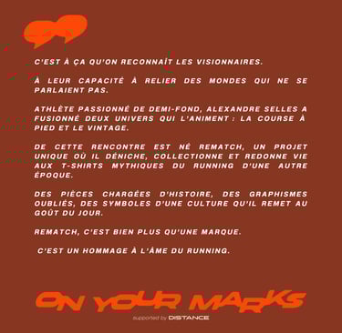 Plongez dans l’univers d’Alexandre Selles, athlète de haut niveau et fondateur de Rematch, un projet unique qui relie la culture running et la mode vintage.