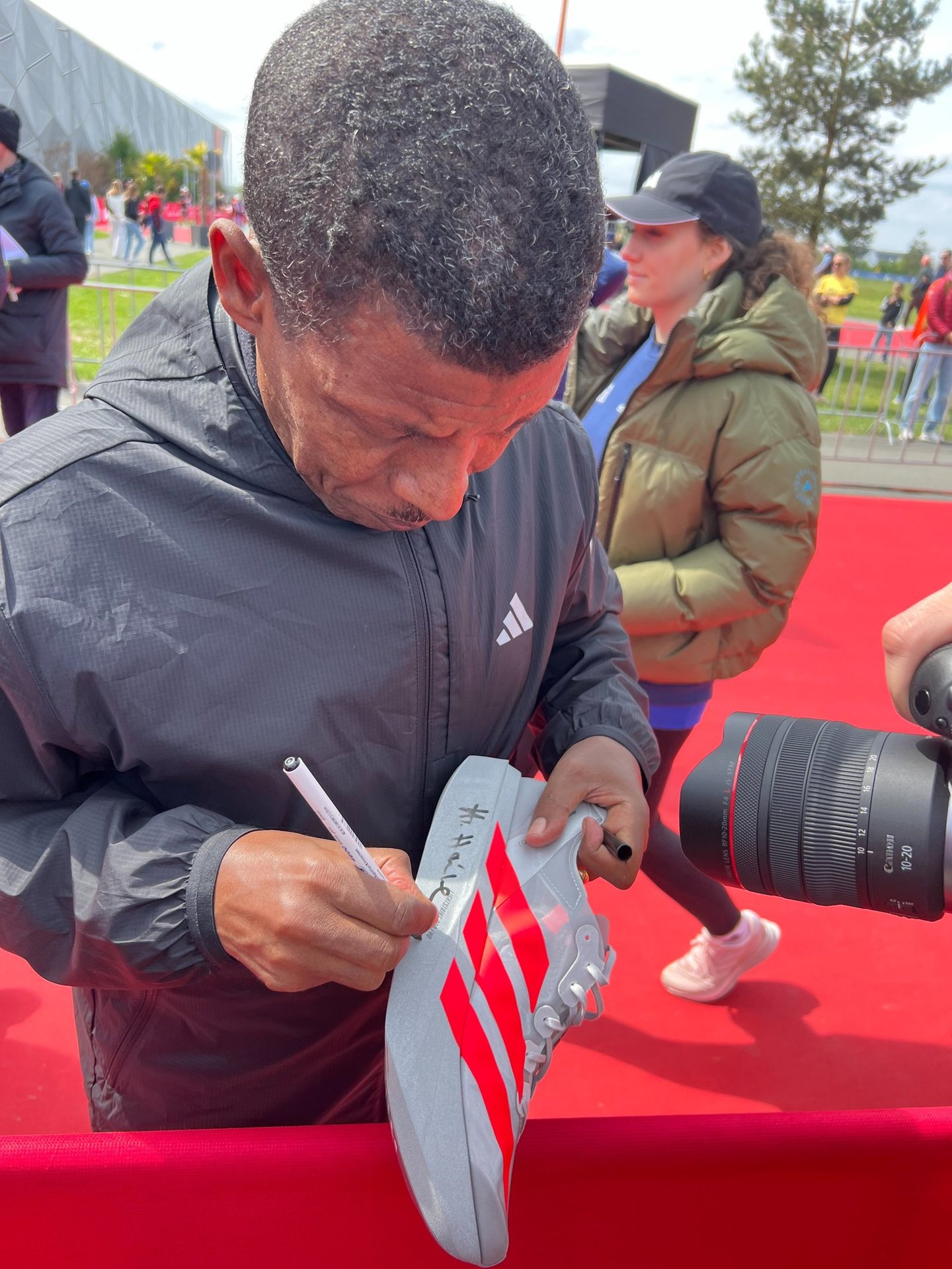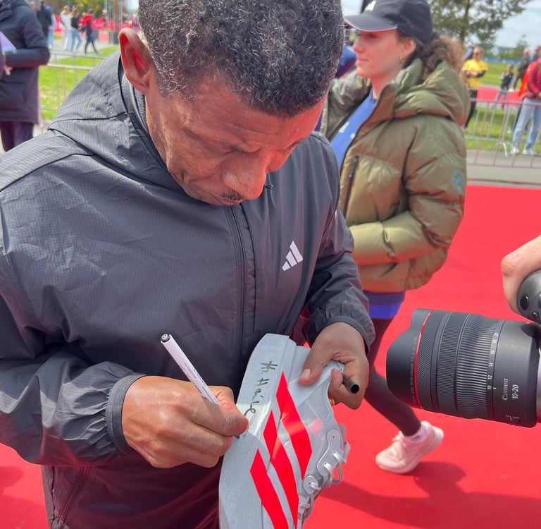 Il a fait dédicacer sa paire par Haile Gebrselassie, une légende du marathon.