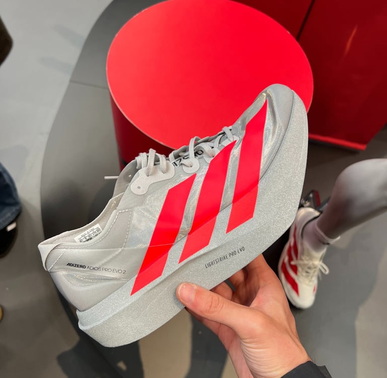 En 2023, Adidas a lancé une chaussure révolutionnaire : la Adios Pro Evo 1. Véritable bombe de performance à 138 g en taille 42, c’est l’un des modèles les plus légers jamais vus sur le marché.
