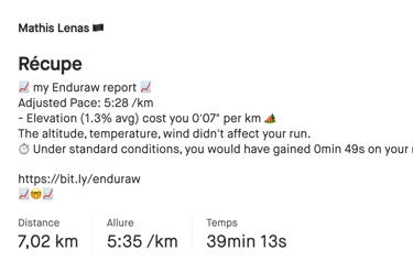 En en parlant avec un ami, ce dernier m’a fait la remarque suivante : “oh non, on va bientôt voir sur Strava des coureurs insatisfaits de leurs résultats qui vont mettre en avant le résultat d'Enduraw”. Un peu comme quand un coureur annonce son temps officiel et son temps “à la montre” (en général bien plus avantageux 😅 ) ce qui est parfaitement inutile et faux si la compétition à laquelle il a participé est labellisée par la FFA.