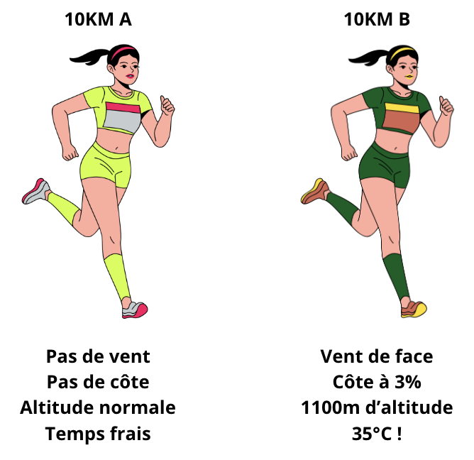 Lorsque l’on participe à une compétition, il y a de nombreux paramètres qui interviennent dans la performance. La chaleur, le vent, l’altitude, le dénivelé sont des facteurs qui peuvent avoir une influence sur votre résultat !