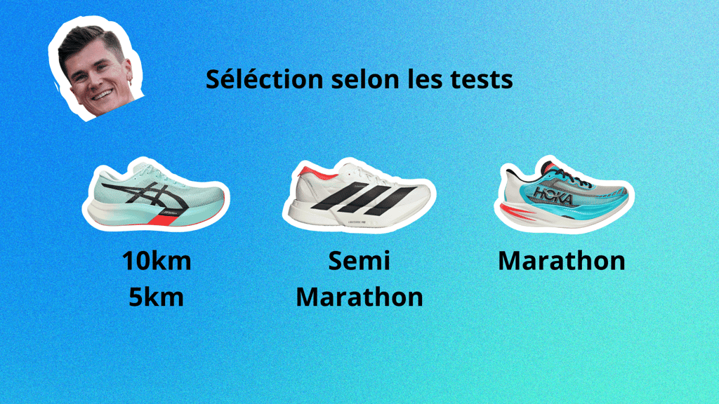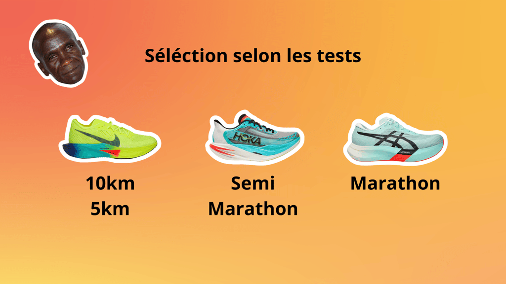 Choisir plusieurs modèles de chaussures (ex : Nike Alphafly, Adidas Adios Pro, Asics Metaspeed).